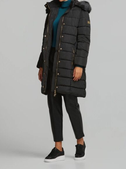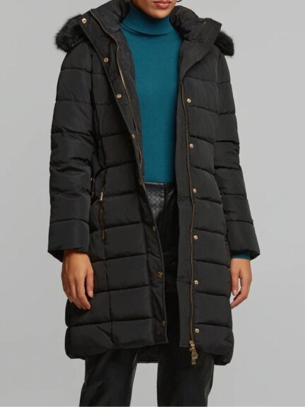 Μπουφάν Με Ζώνη Και Ψηλό Γιακά Από Γούνα