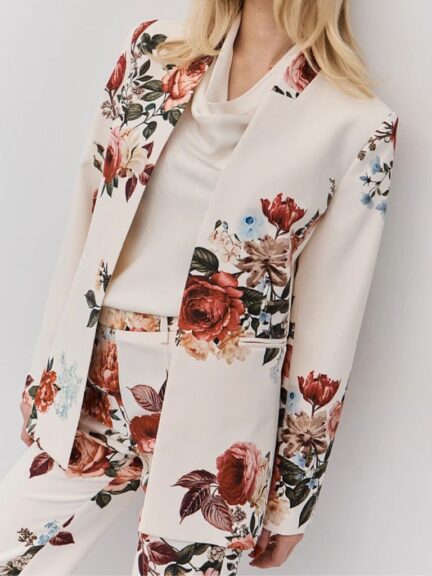 Φλοράλ Σακάκι Xωρίς Kλείσιμο