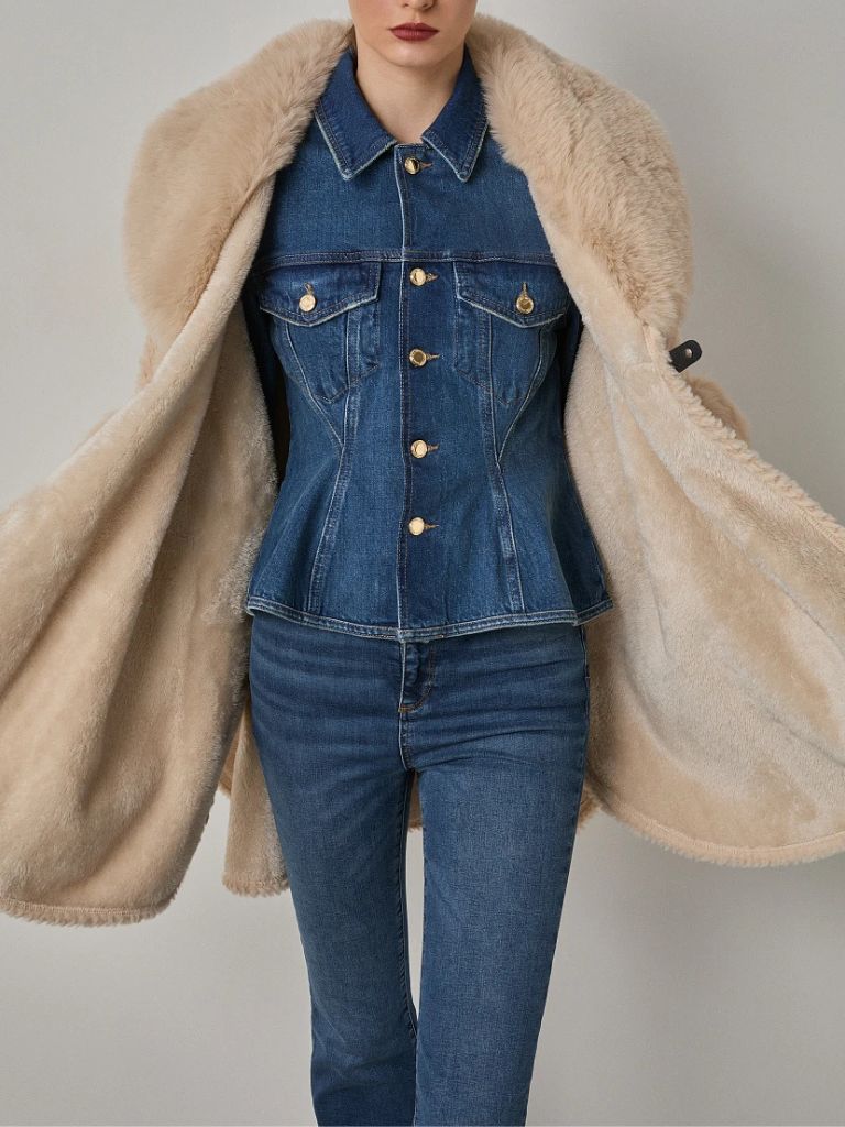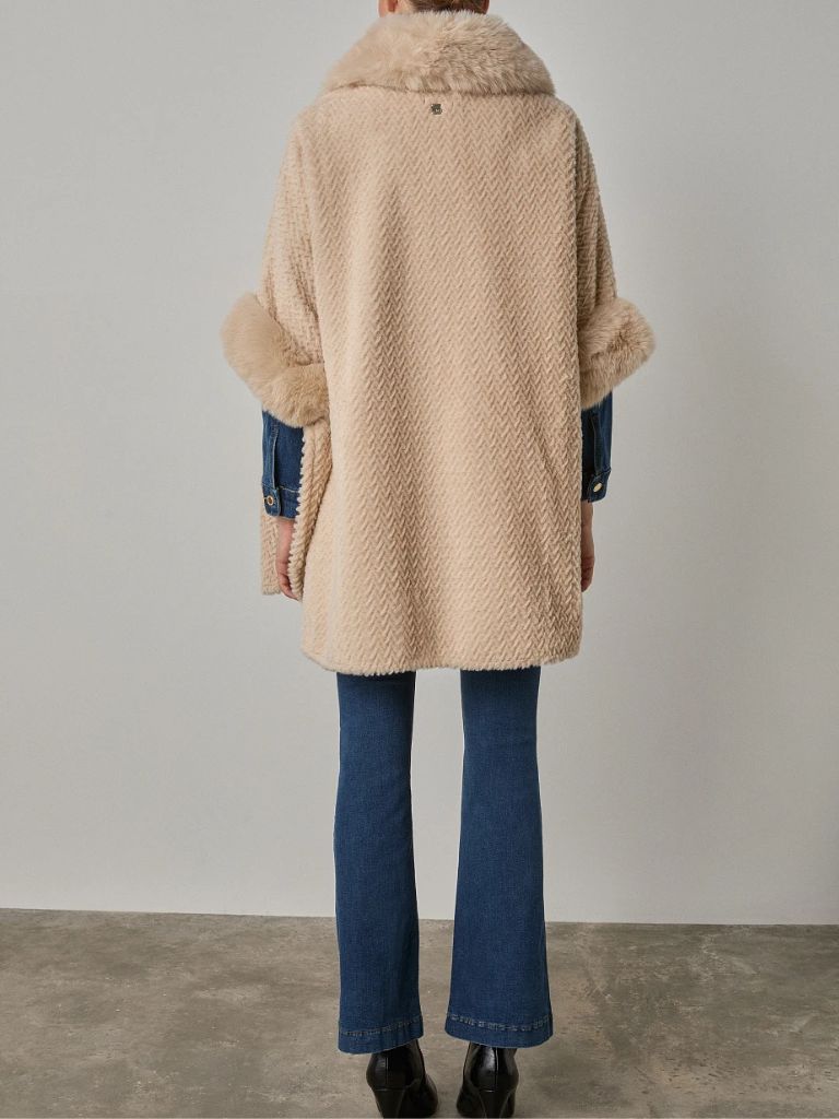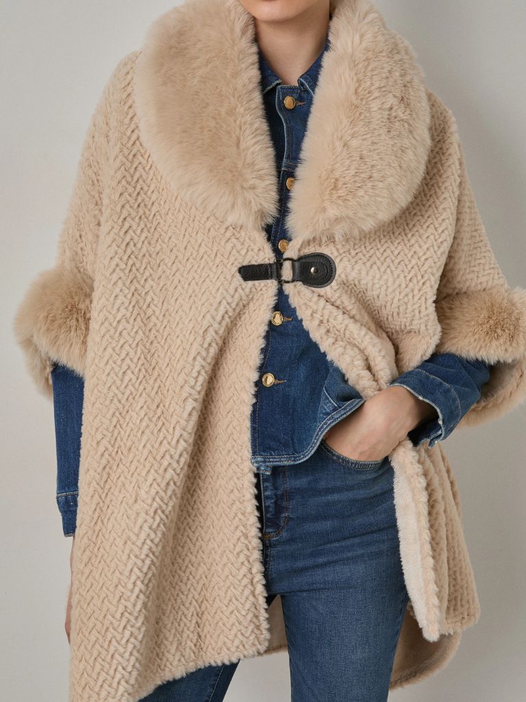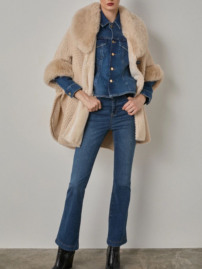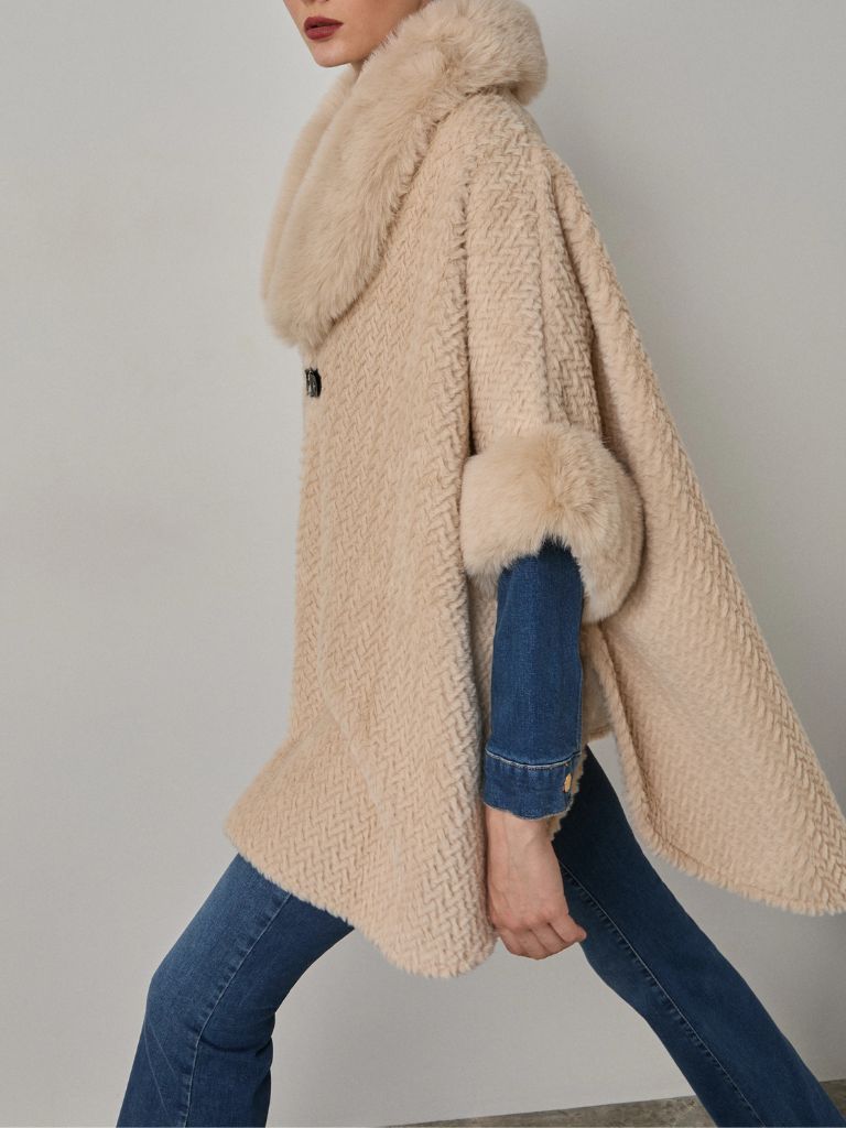 Κάπα, με συνθετική γούνα. Kλείσιμο με κουμπί, απαλή υφή και άνετη εφαρμογή.