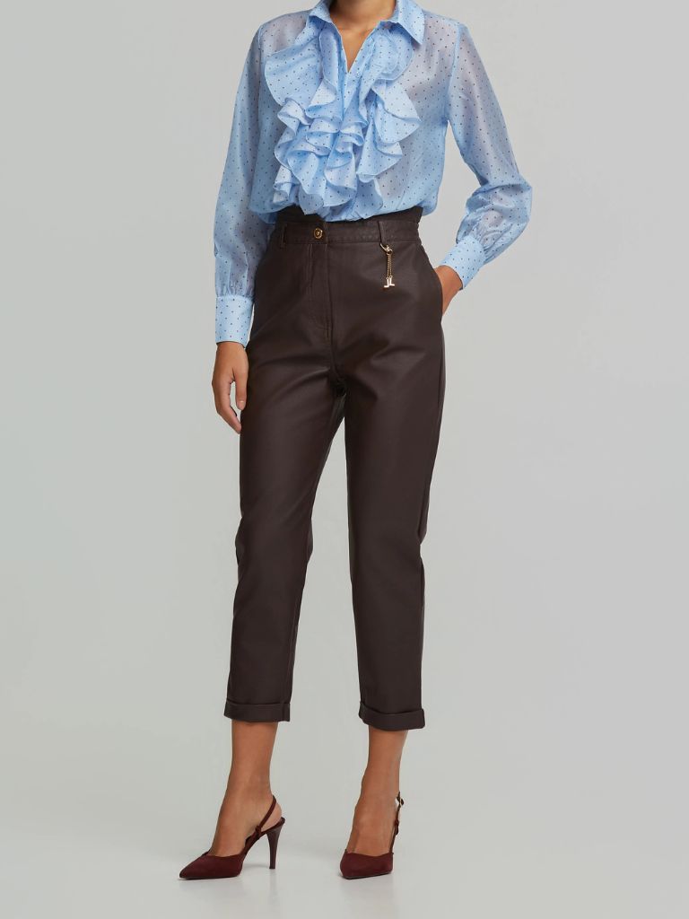 Baggy Ψηλόμεσο Παντελόνι Με Δερμάτινη Όψη