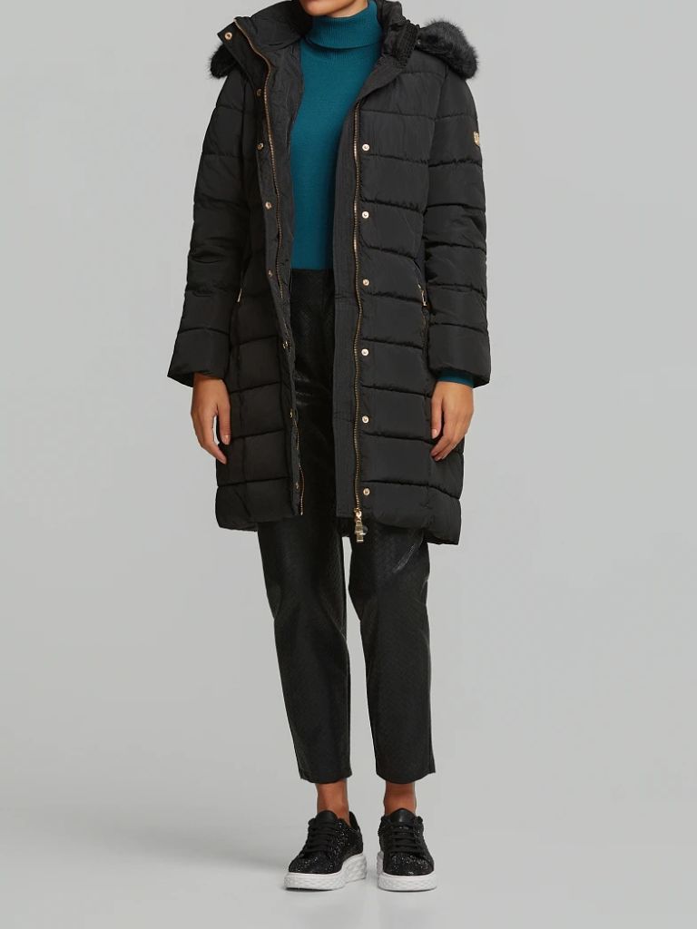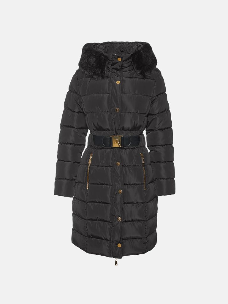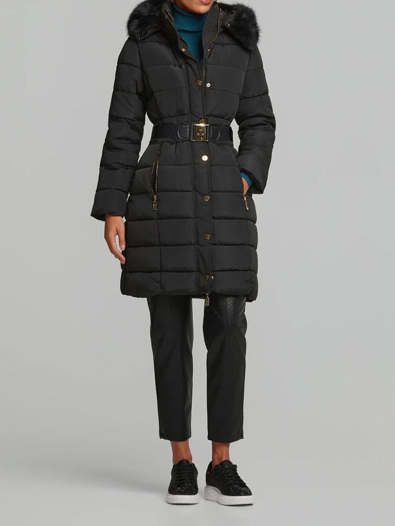 Μπουφάν Με Ζώνη Και Ψηλό Γιακά Από Γούνα