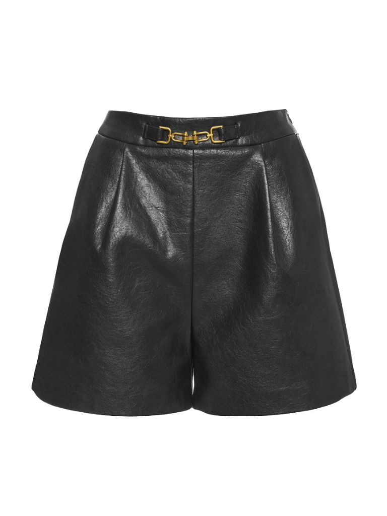 Δερματίνη σορτς, με αγκράφα. Κλείσιμο με φερμουάρ στο πλάι, έχει πιέτες, με κανονική εφαρμογή.