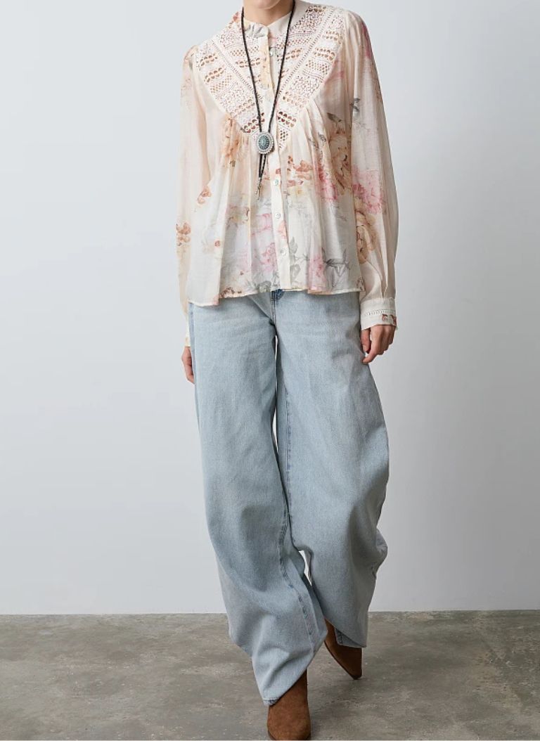 Φλοράλ Πουκάμισο Με Διάτρητες Λεπτομέρειες
