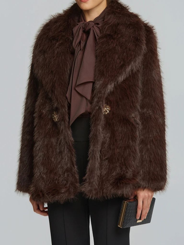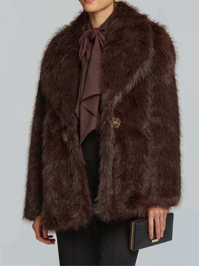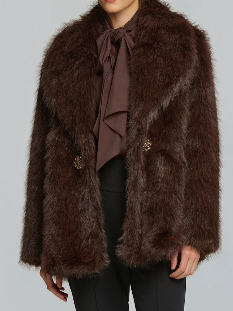 Κοντή Faux Γούνα Με Κουμπιά Κρύσταλλα