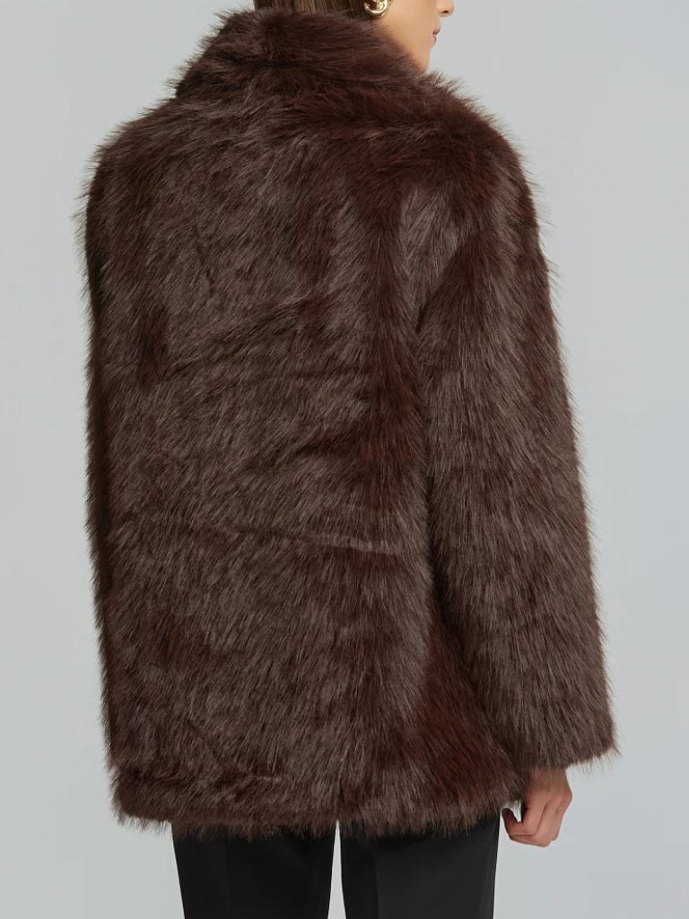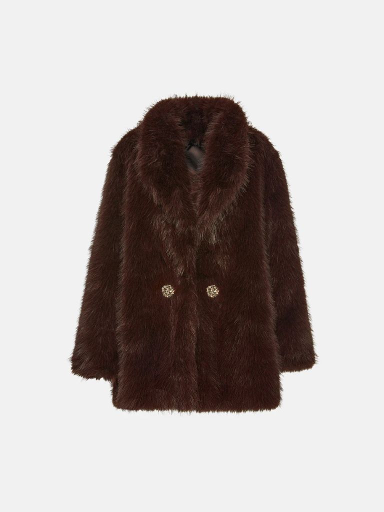 Κοντή faux γούνα με κουμπιά κρύσταλλα και πλαϊνές τσέπες.
