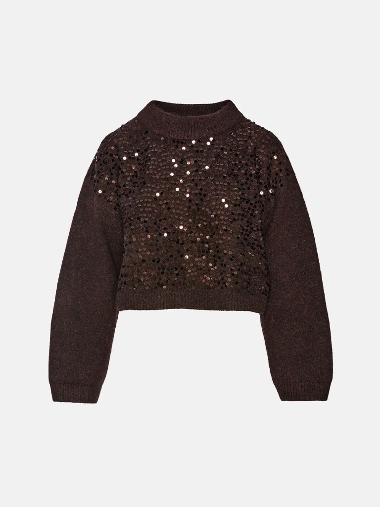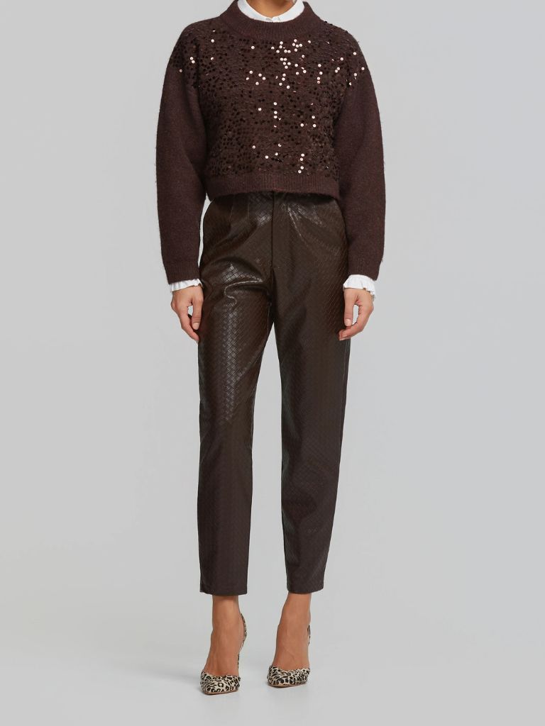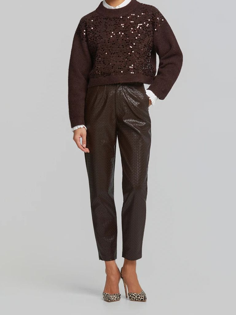 Κροπ πουλόβερ με παγιέτες σε άνετη γραμμή.