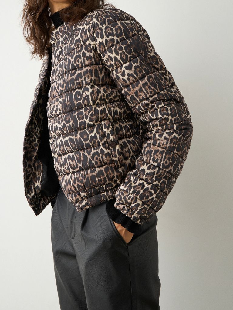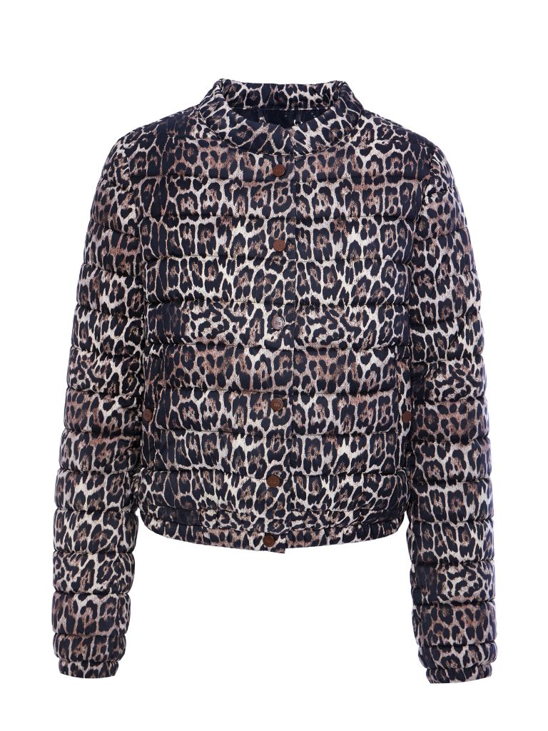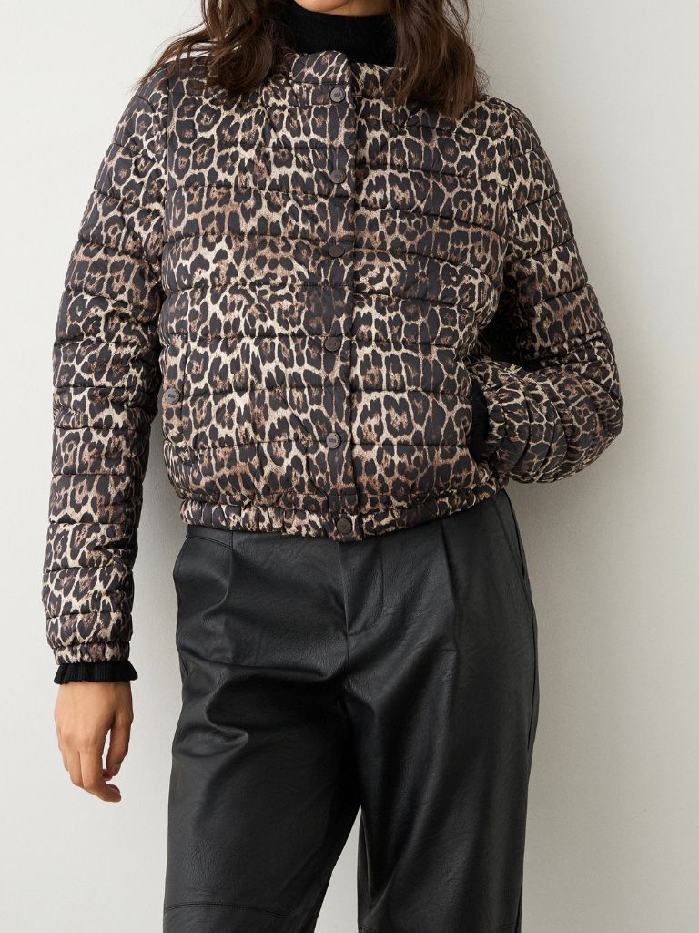Leopard puffer, κλείσιμο με κουμπιά. Έχει κανονική εφαρμογή.