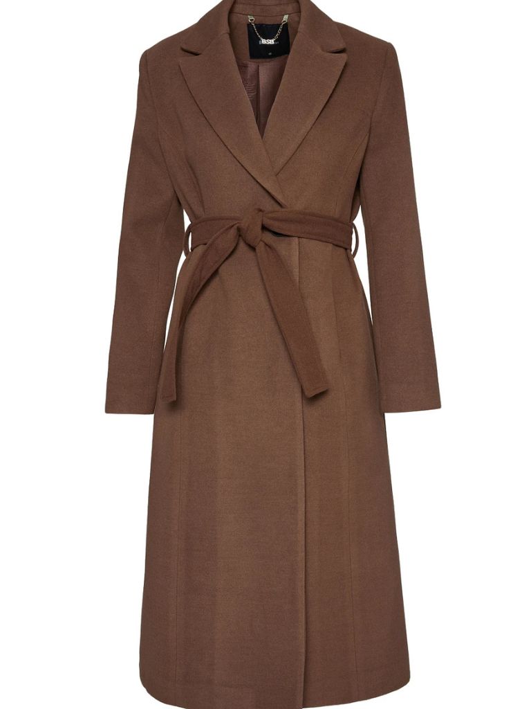 Μακρύ παλτό, με γιακά και πέτο. Με βάτες στους ώμους, κρουαζέ δέσιμο με ζώνη.Έχει κανονική εφαρμογ, με απαλή υφή.