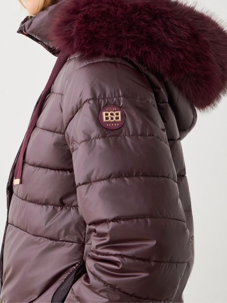 Puffer κοντό μπουφάν, με αποσπώμενη κουκούλα και συνθετική γούνα. Kλείσιμο με φερμουάρ και κουμπιά, με κανονική εφαρμογή.