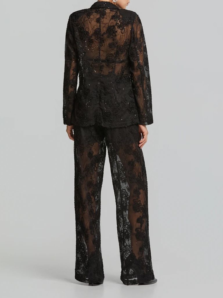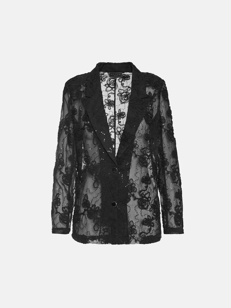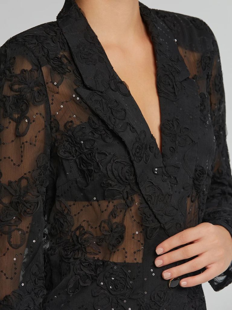 Σακάκι από δαντέλα με στρας, κλείσιμο με κουμπιά και άνετη εφαρμογή.