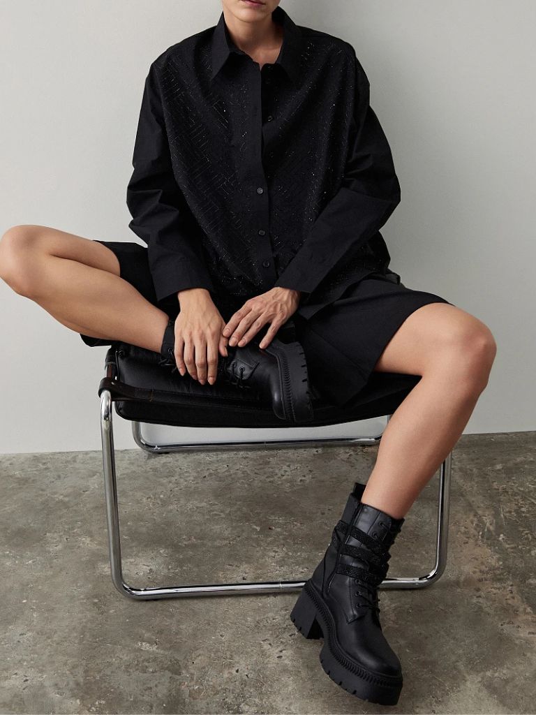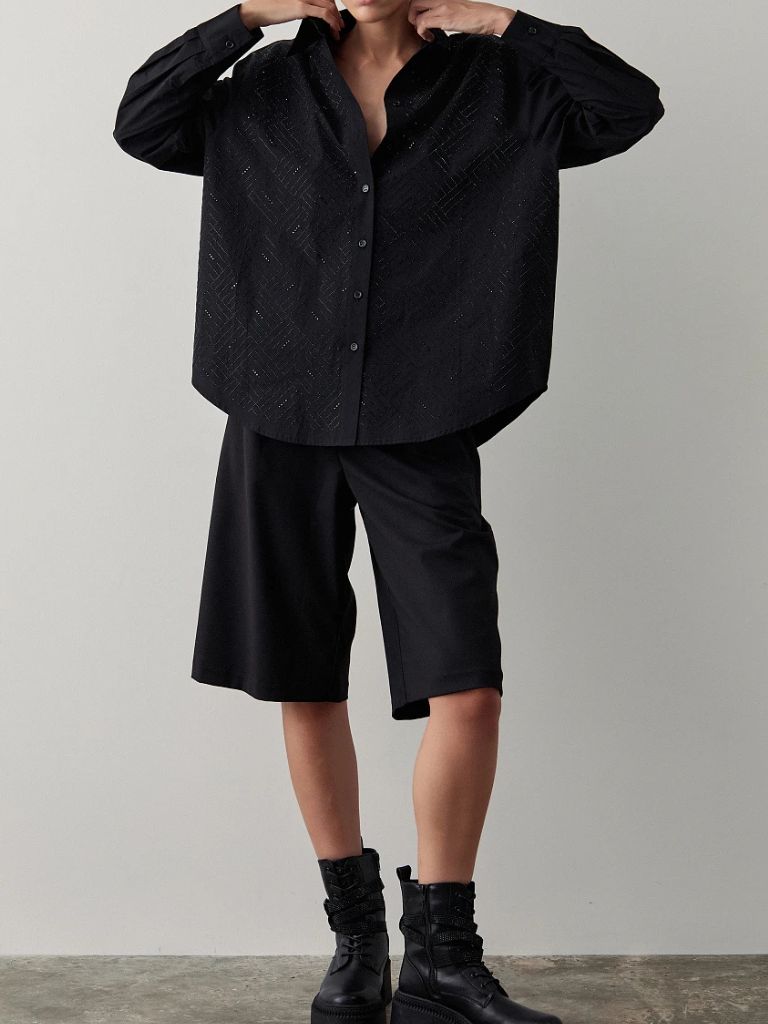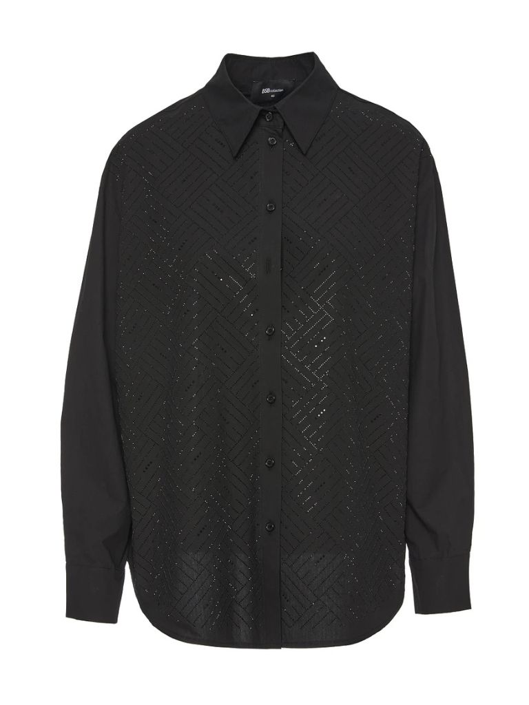 Πουκάμισο βαμβακερό, με γιακά. Κλείσιμο με κουμπιά, με στρας . Έχει άνετη εφαρμογή.